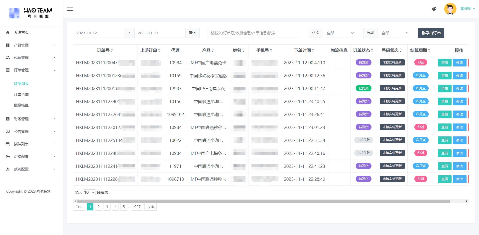没想到系统还提供了丰富的功能模块,包括号卡上下架管理、订单管理、代理管理等,满足了用户在号卡分销过程中的各种需求。此外,系统还实时同步订单的物流信息,为用户提供了更加便捷的交易和配送体验。